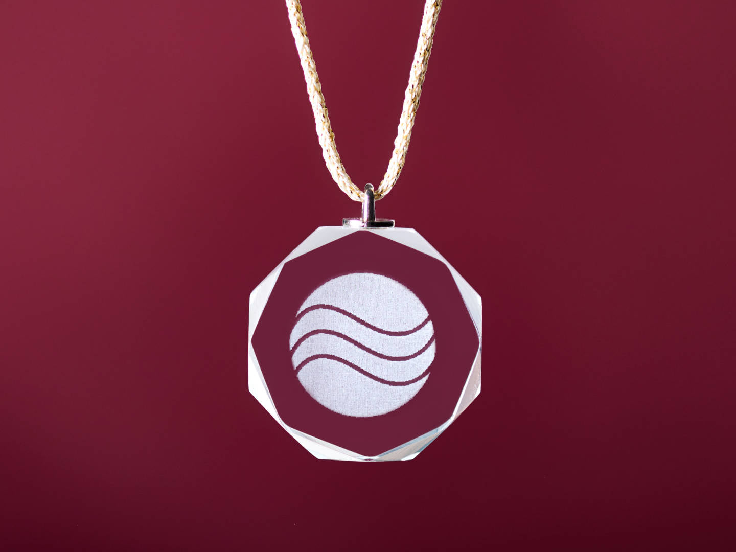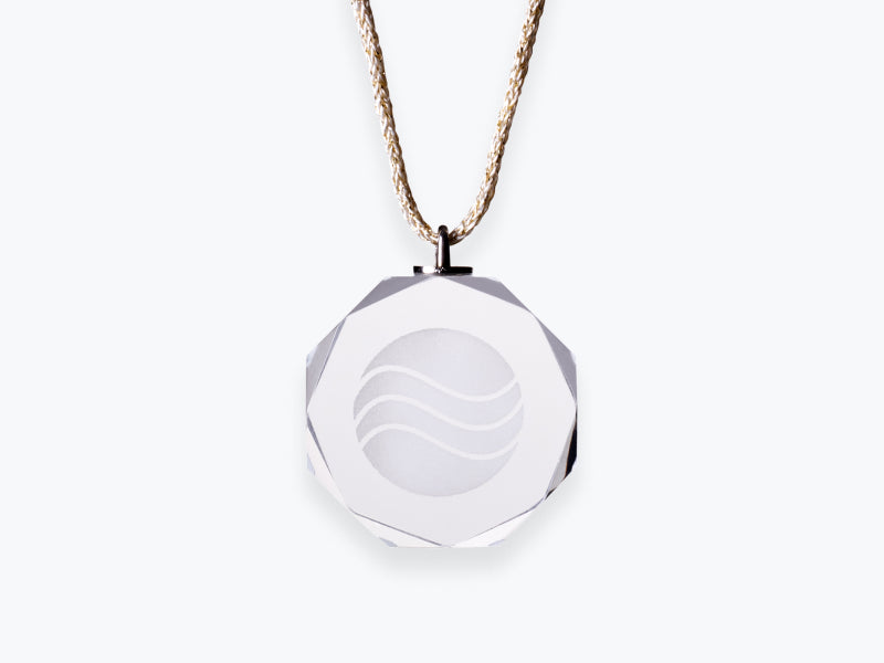 Materiał: szkło kryształowe z hologramem Somavedic i metalowym oczkiem (bez sznurka)